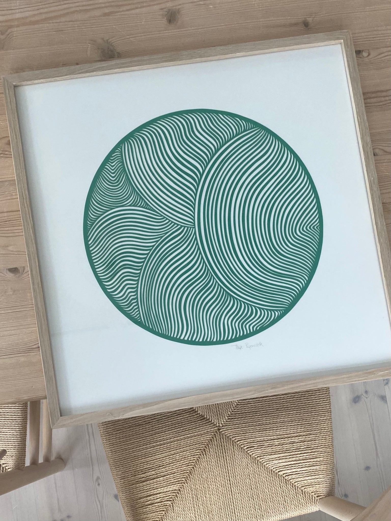 Indrammet i egetræsramme. Sendes ikke - skal afhentes i Aalborg